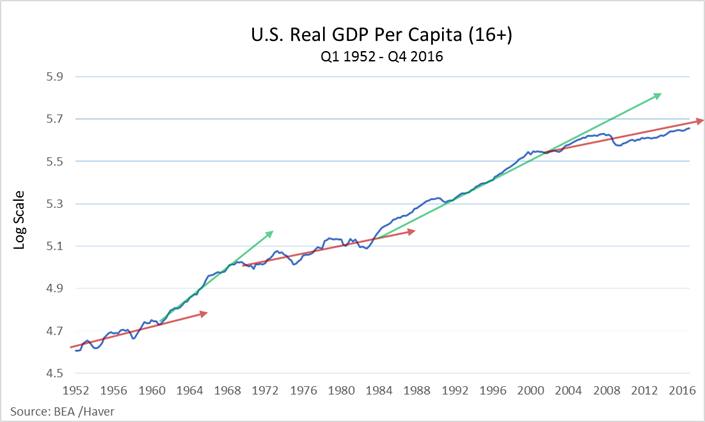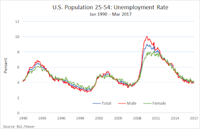 To the extent that the forces I've described above are present in reality, the analysis here calls into question the need for monetary policy tightening too rapidly at this time. Low unemployment does not necessarily portend higher inflation. And keep in mind that other measures of labor market activity, like the prime-age employment-to-population ratio, are still below their historical norms. Of course, this does not mean that monetary policy makers can afford to ignore the threat of inflation. While the worldwide demand for U.S. nominal debt instruments has been robust for a long time now, this "high U.S. money demand" regime is not likely to last forever. When the growth in money demand abates, the consequence is likely to manifest itself as higher inflation expectation (and bond yields)--much like what we observed following the November 2016 presidential election in the United States, except on a much larger scale. A good policy framework should make provisions for these and other contingencies, including sudden changes in the structure of fiscal policy.